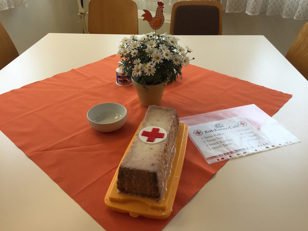 Bei einer ansehnlichen Auswahl an Kuchen und einer heißen Tasse Kaffee ergaben sich wieder nette Gesprächsrunden an einem sonst eher trüben Tag. Trotzdem können wir zufrieden sein, wir haben treue Besucher die sich auch von ein bisschen Regen nicht abhalten lassen zum DRK zu kommen. Der DRK Ortsverein bedankt sich bei allen Besuchern und Helfern, aber vor allem auch bei den Kuchenspendern, hier waren einige noch ganz überaschend eingetroffen die uns sehr gefreut haben, und denen sei gesagt, es ist nichts übrig geblieben auch die letzten kleinen Reste wurden noch vernascht.