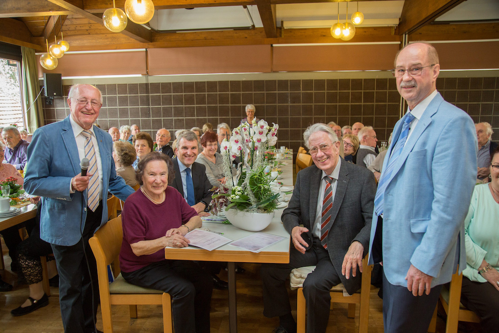 Am 09. April 2019 feierte der DRK Altenclub Neckargröningen im Beisein der Gründer des Vereins, dem Ehepaar Gert und Erika Birkert sein 50-jähriges Bestehen mit einem Sektempfang. Die Seniorenclubs aus Aldingen, Hochberg, Hochdorf und Neckarrems brachten die Glückwünsche ihrer Vereine und Gastgeschenke. Pattonville hatte telefonisch gratuliert. Oberbürgermeister Schönberger ehrte das Ehepaar Birkert mit einer Silbermünze und den Verein, in dem er von der Stadt Remseck eine Spende überbrachte. Eine Spende überbrachte, neben seinen Glückwünschen auch Herr Peter Faber vom DRK Ortsverein Neckargröningen, sowie Herr Karl-Eugen Häcker, der erst am 01. April seinen 100. Geburtstag gefeiert hatte. Herr Birkert verabschiedete sich vom Vorstand des Altenclub und legte das Amt in die Hände von Otto Korn und Roland Kögler, die das Amt in den letzten zwei Jahren bereits kommissarisch inne hatten. Es war eine schöne Feier, mit vielen guten, selbstgebackenen Torten. Für gute Musik sorgte die Rentnerband. Otto Korn und Roland Kögler berichteten über die Historie des Vereins, von der Gründung bis in die Gegenwart. In einem sehr guten Sketch wurde Ähnliches berichtet. Den Abschluss lieferten dann wieder Otto Korn, Roland Kögler und Hermann Tobisch mit dem Kupple von Otto Reuther: „in 50 Jahren ist alles vorbei.“ Alles vorbei war aber erst nachdem die Schnitzel und der gespendete Kartoffelsalat von Bauer Klotz verspeist und die Reste aus den Gläsern getrunken waren. Gedankt sei auch allen fleißigen Helfern in der Küche, ohne die so eine Veranstaltung nicht läuft und Sabine Beyer, die mit ihren schönen Fotos das Ganze für die Nachwelt festgehalten hat. Nicht zu vergessen Hermann Tobisch, der mit Musik erst die Stimmung in unsere Ausflüge bringt und den Geburtstagskindern ihre Ständchen spielt. Herr Gert Birkert bekleidet den Club nun als Ehrenvorsitzender. Frau Erika Birkert ist auch weiterhin für die Kasse des Altenclubs zuständig. Von allen fleißigen Helfer hoffen wir, dass Sie gesund bleiben, weiterhin Freude an ihrer Arbeit für den Altenclub haben und auch wieder noch sind, wenn es in zehn Jahren heißt: „60 Jahre Altenclub Neckargröningen“